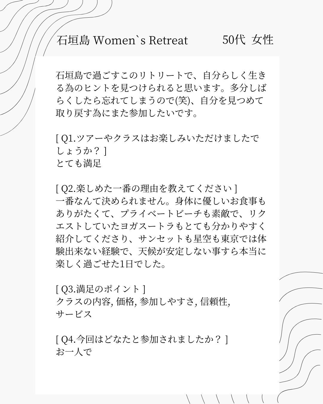 パーソナルリトリート参加費について