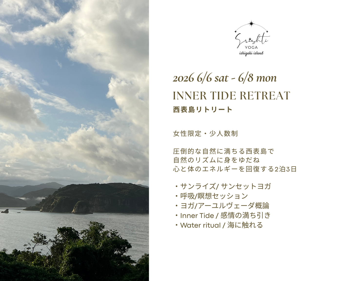何かを加えたり変えるためではなく、本来備わっているリズムと調和を思い出すための、八重山の自然と静けさに包まれた3日間。